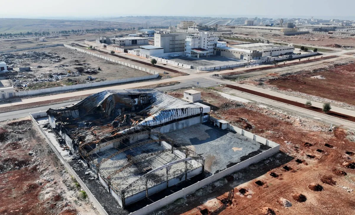 تظهر صورة التقطتها طائرة من دون طيار مصنعاً متضرراً بالمدينة الصناعية في حلب 18 فبراير 2025 (رويترز)