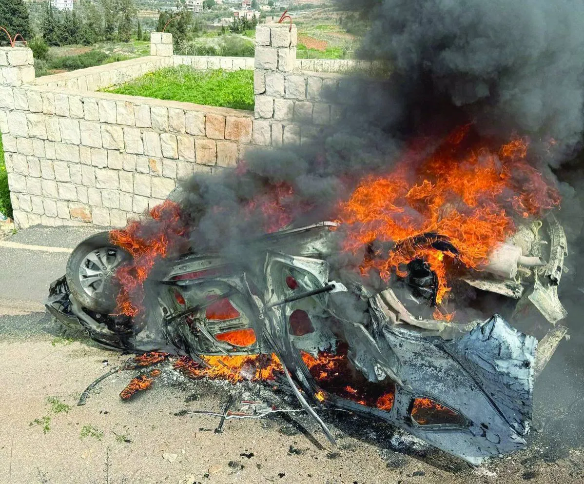 آثار غارة جوية إسرائيلية استهدفت سيارة (الوكالة الوطنية)