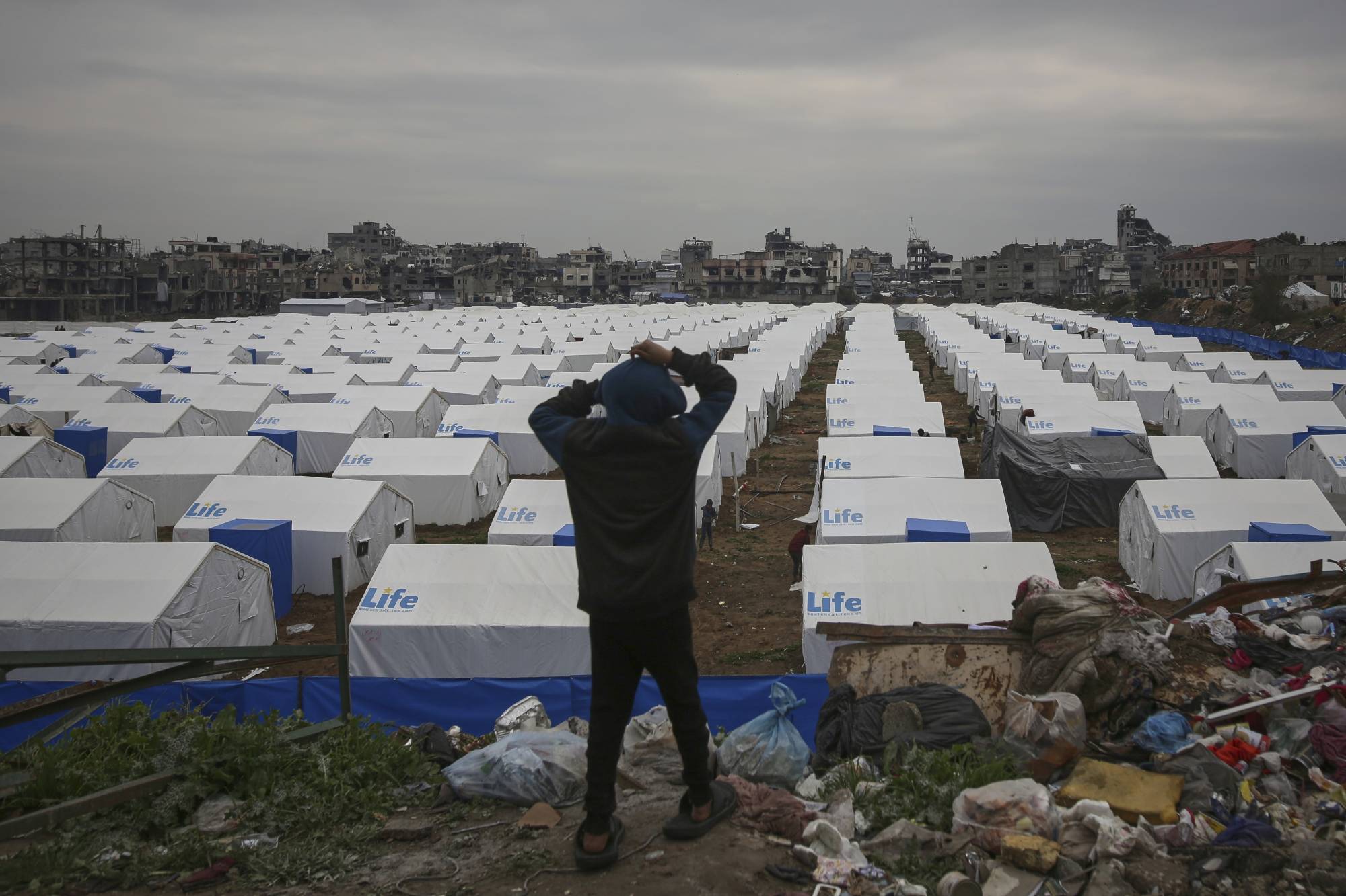 خيام للنازحين في حي الزيتون بشمال قطاع غزة يوم 7 مارس الحالي (أ.ب)