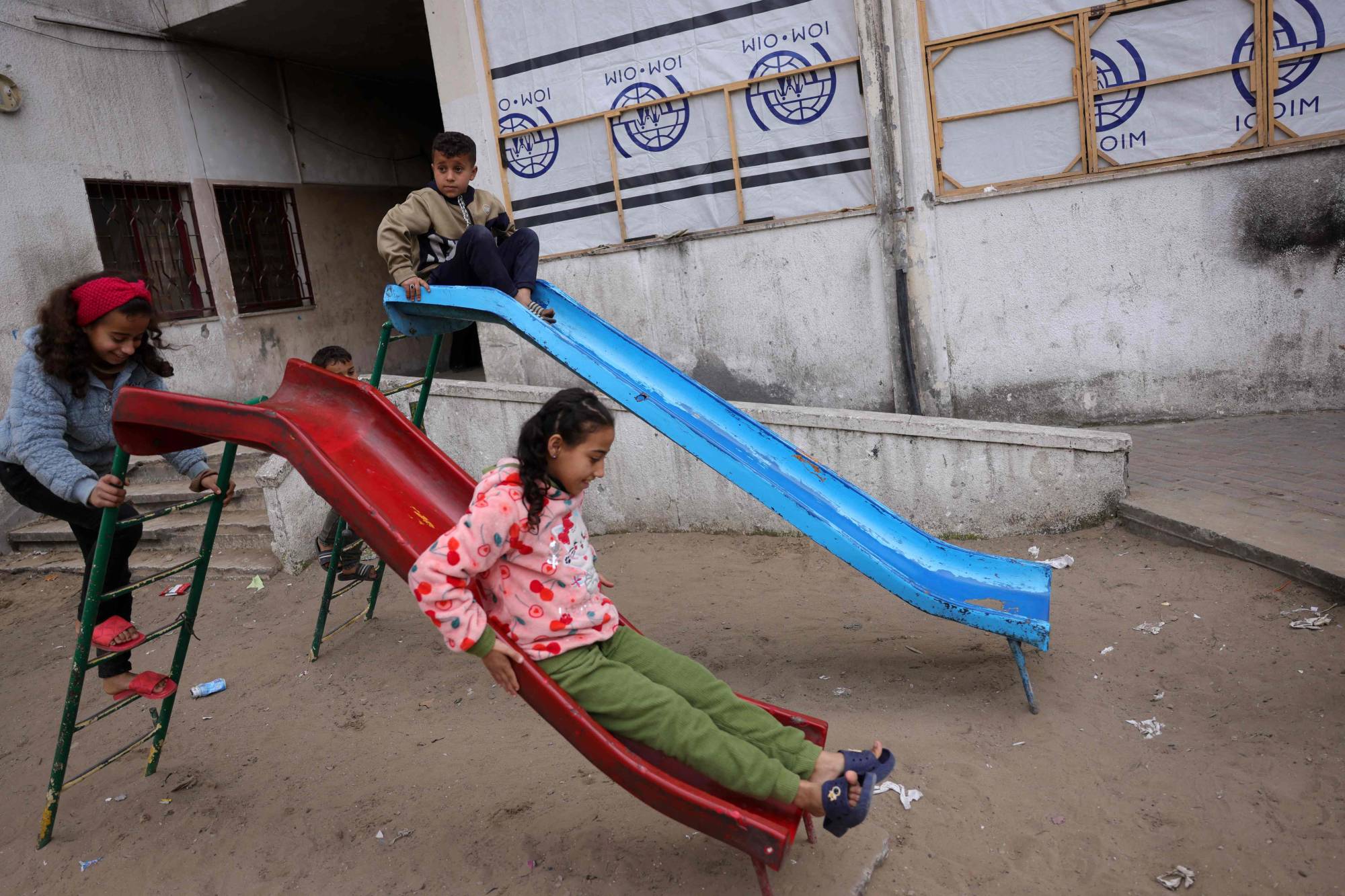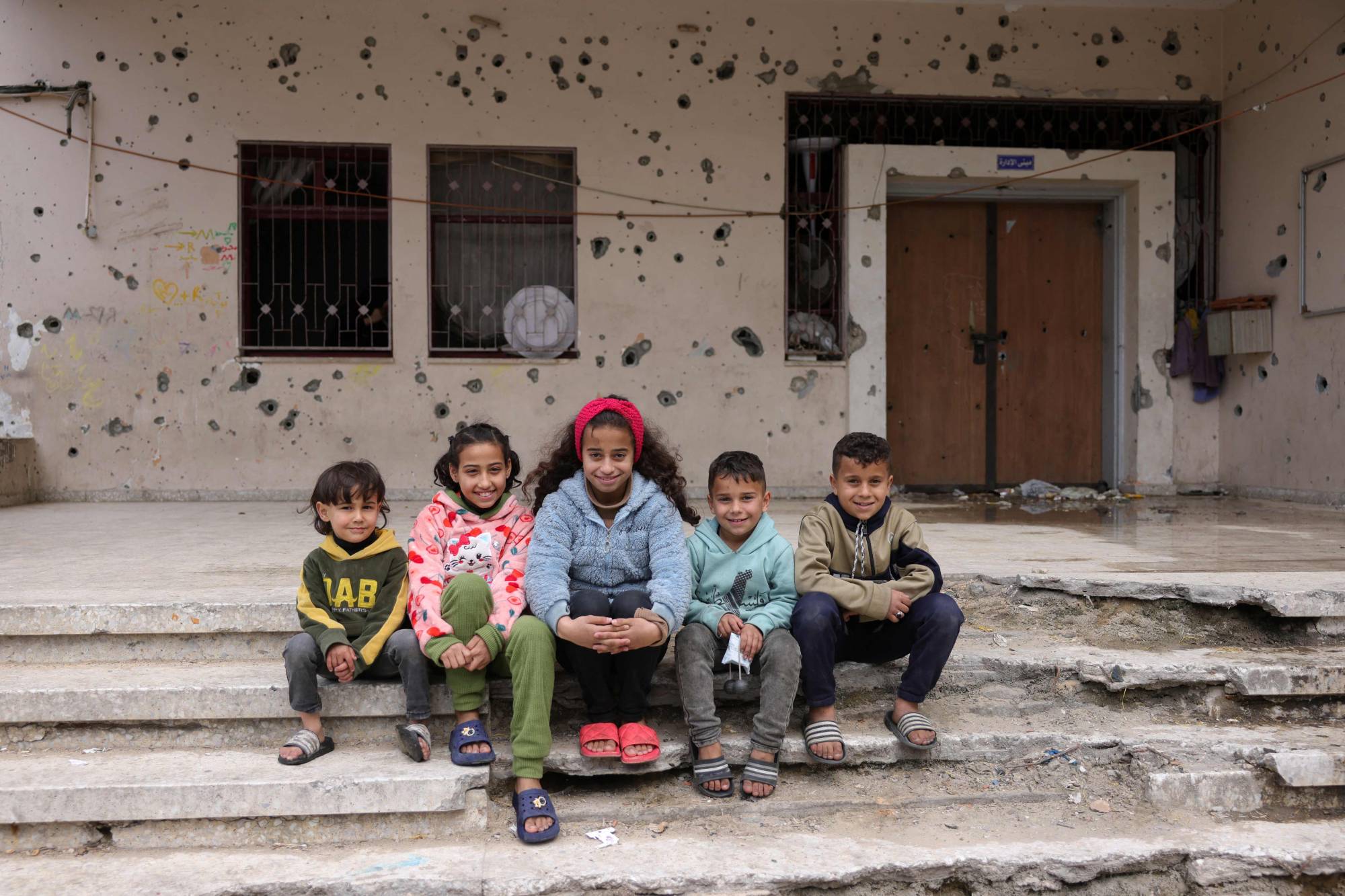 أطفال في ميتم متضرر بفعل الحرب في مدينة غزة يوم 6 مارس الحالي (أ.ف.ب)