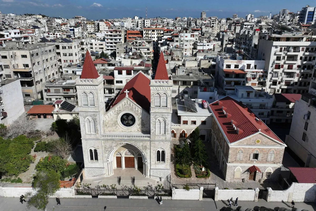 صورة جوية تظهر كنيسة قلب يسوع الأقدس في مدينة اللاذقية الساحلية السورية 10 مارس 2025 (أ.ف.ب)