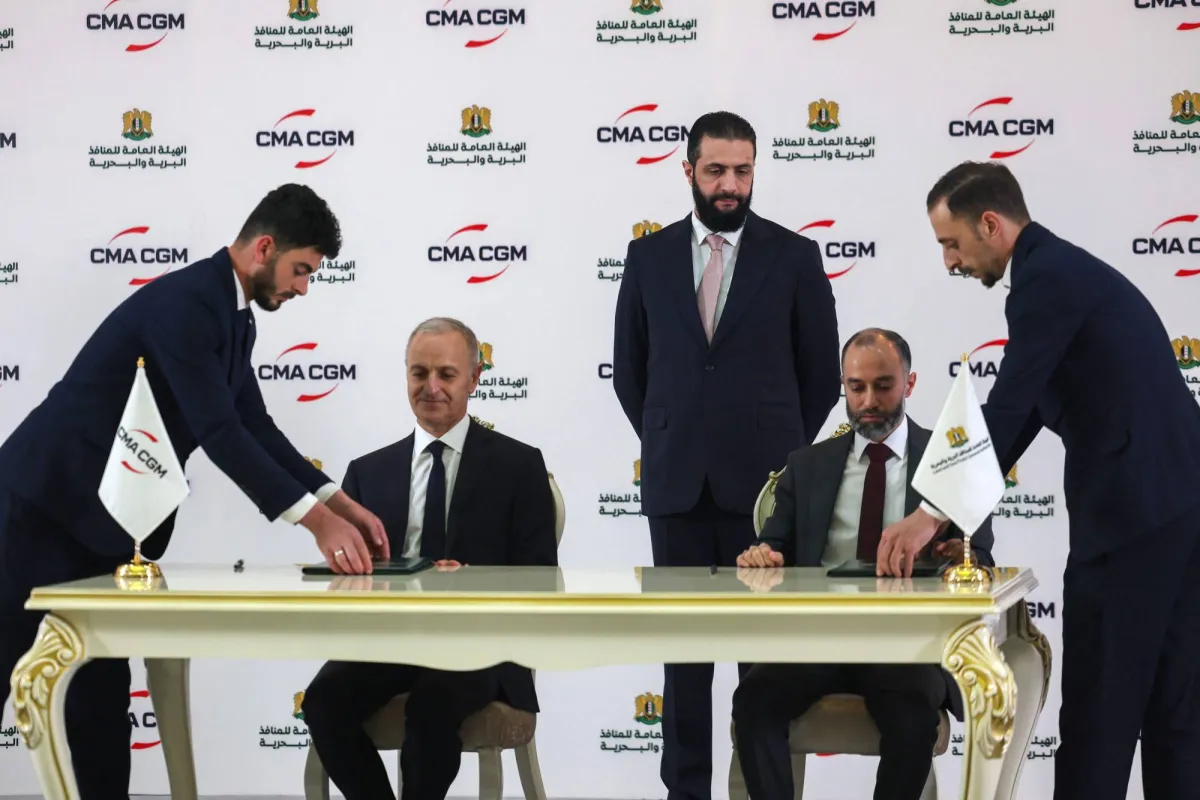 وقّعت سوريا، اليوم الخميس، عقداً لمدة 30 عاماً مع شركة «سي إم إيه سي جي إم» الفرنسية، لتطوير ميناء اللاذقية وتشغيله، على ما أعلن مدير المرفأ ومسؤول من الشركة لـ«وكالة الصحافة الفرنسية»، على هامش توقيع العقد في القصر الرئاسي.