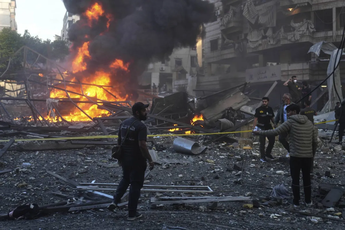 ألسنة اللهب تتصاعد بعد غارة إسرائيلية على الضاحية الجنوبية لبيروت (أ.ب)