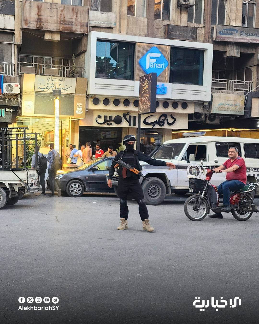 شهدت المدن السورية، عشية عيد الأضحى، استنفاراً أمنياً وانتشاراً كثيفاً لعناصر الأمن العام في الأسواق والأماكن المكتظة، في حين عاد التوتر إلى منطقة جبلة على الساحل السوري، في ظل تنفيذ قوى الأمن الداخلي، في ريف اللاذقية، عملية أمنية «لملاحقة المتورطين في الهجوم الذي استهدف مركز الاتصالات في قرية الدالية بريف جبلة»، قبل يومين، في حين أعلن مقتل عنصرين من شرطة المرور في ريف درعا الغربي على أيدي مجهولين، والعثور على جثث خمسة عمال في دمشق كانوا قد فُقدوا، الأحد الماضي.