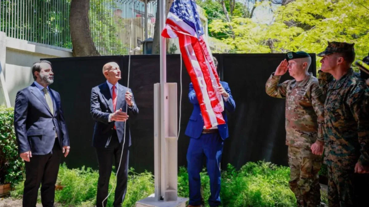 توم برّاك يعيد رفع العلم الأميركي في دمشق (آ ب)