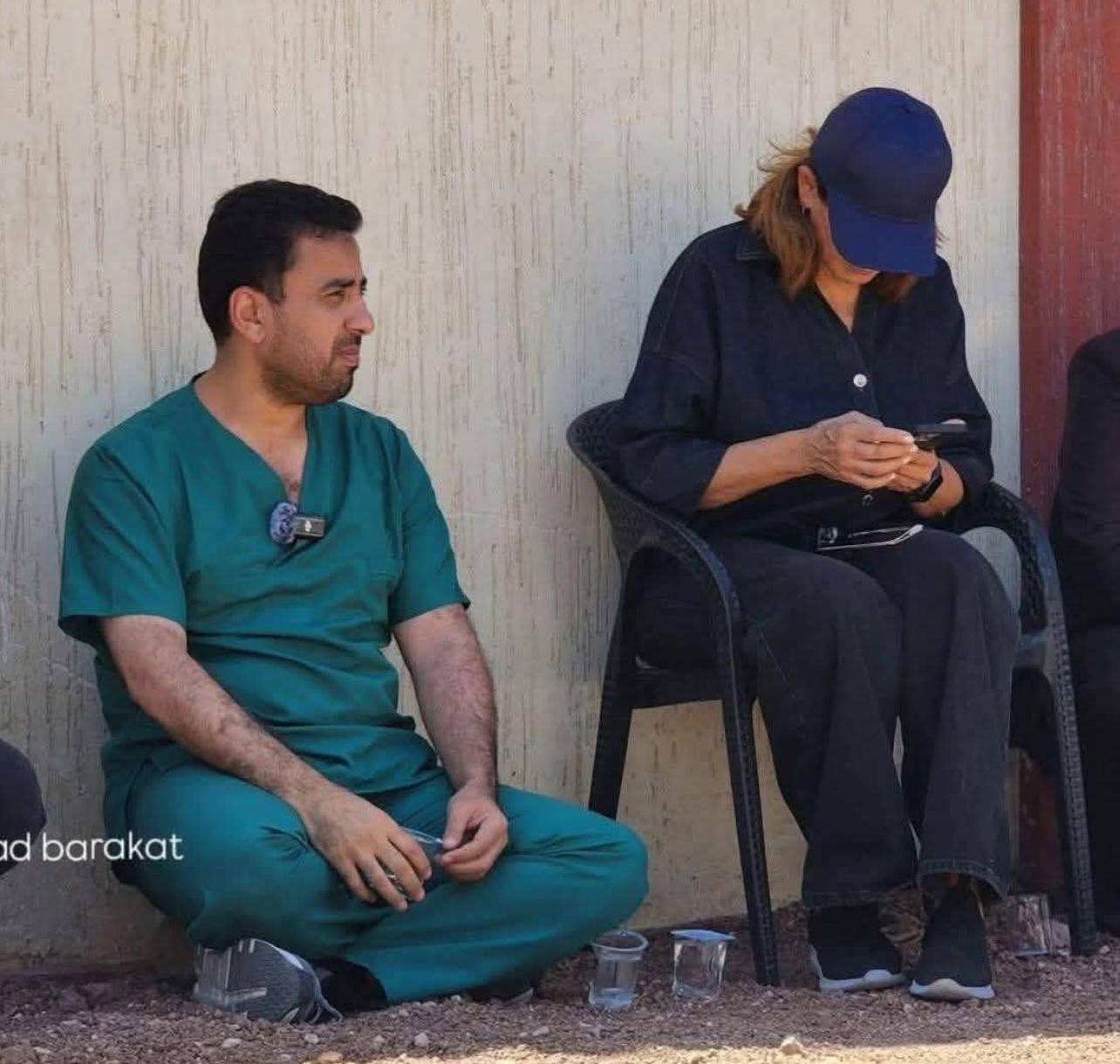 وزيرة الشؤون الاجتماعية والعمل ووزير الصحة ومحافظ السويداء مصطفى البكور (غير ظاهر في الصورة) ينتظرون على أطراف السويداء بعد رفض حكمت الهجري دخول مسؤولين حكوميين صباح اليوم (متداولة)