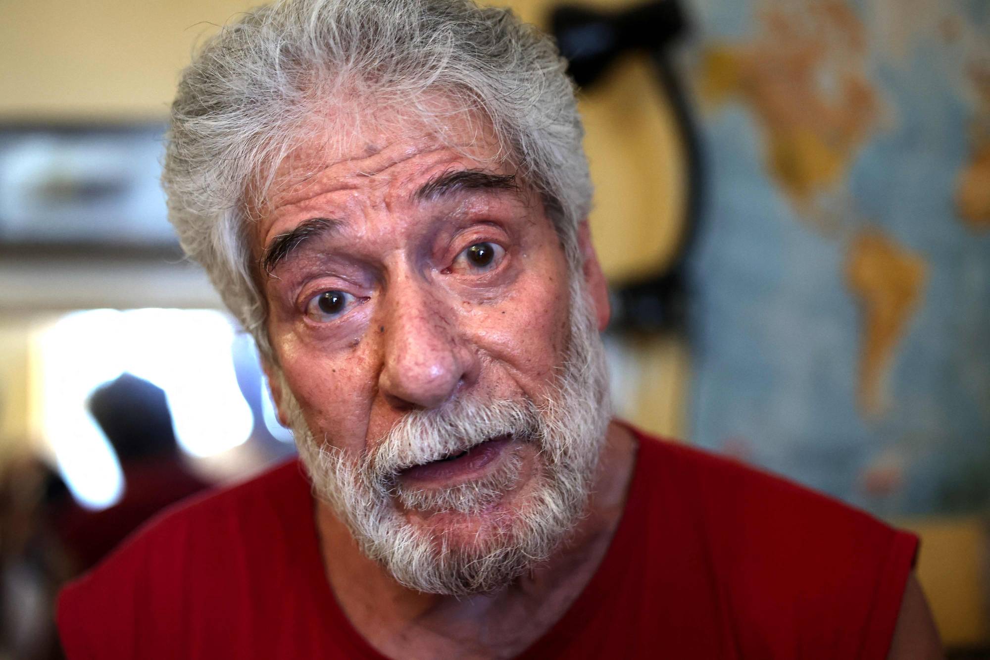 لم تتبدل ملامح الناشط الشيوعي المناهض للإمبريالية عن الصور المعروفة الملتقطة له قبل عقود. صحيح أن الشيب غزا الشعر الكث الأسود واللحية الطويلة، لكن النظرة الثاقبة الحادة بقيت على حالها.