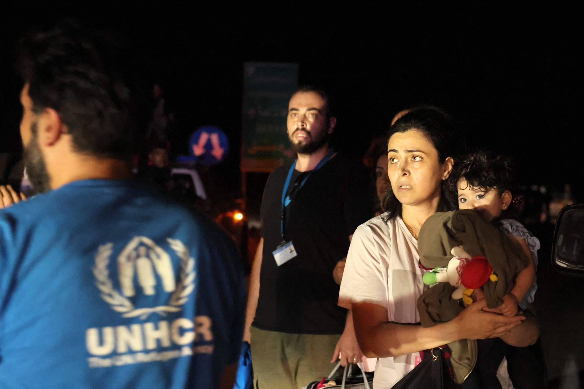 أُجليت عائلات من قِبل الأمم المتحدة عند المنطقة العازلة في بصر الحرير بمحافظة درعا جنوب سوريا الثلاثاء (أ.ف.ب)