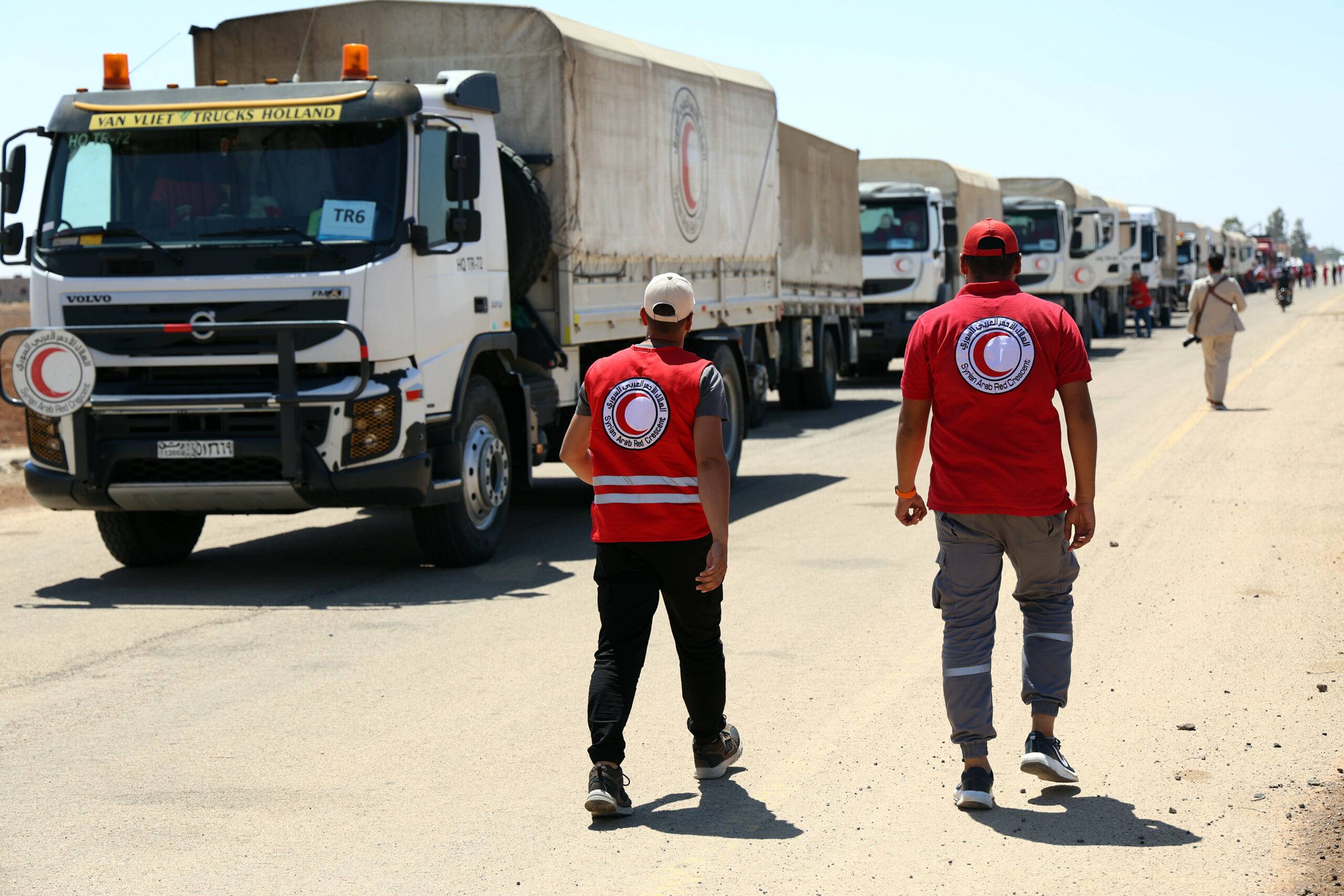 قافلة مساعدات من الهلال الأحمر تصل إلى السويداء عبر بصرى الشام (سانا)