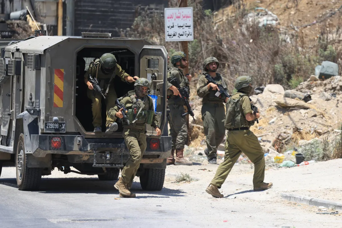 جنود إسرائيليون يتخذون مواقعهم خلال عملية في مدينة نابلس بالضفة الغربية (إ.ب.أ)