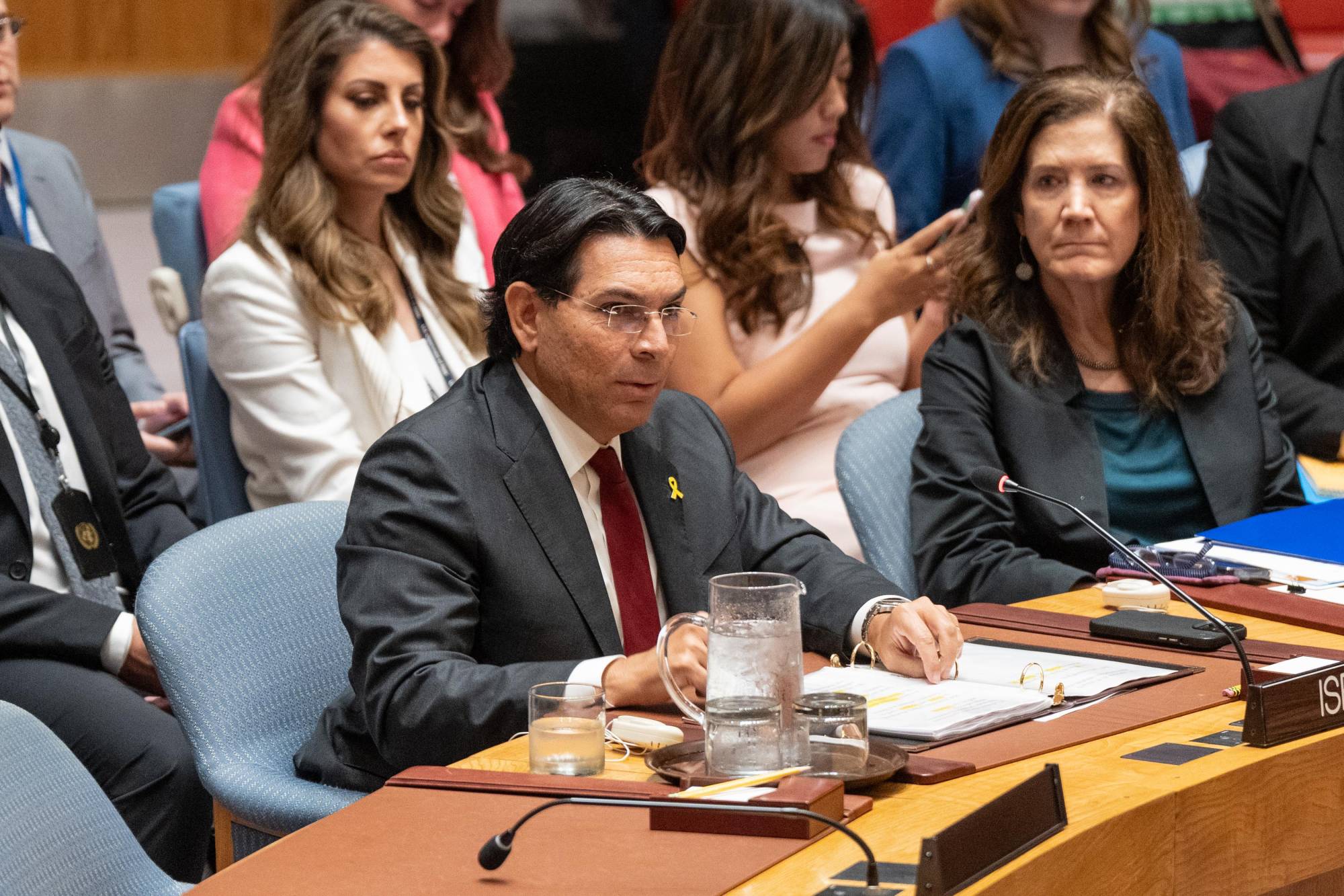 داني دانون سفير إسرائيل لدى الأمم المتحدة خلال جلسة لمجلس الأمن الدولي - 23 يوليو 2025 (د.ب.أ)