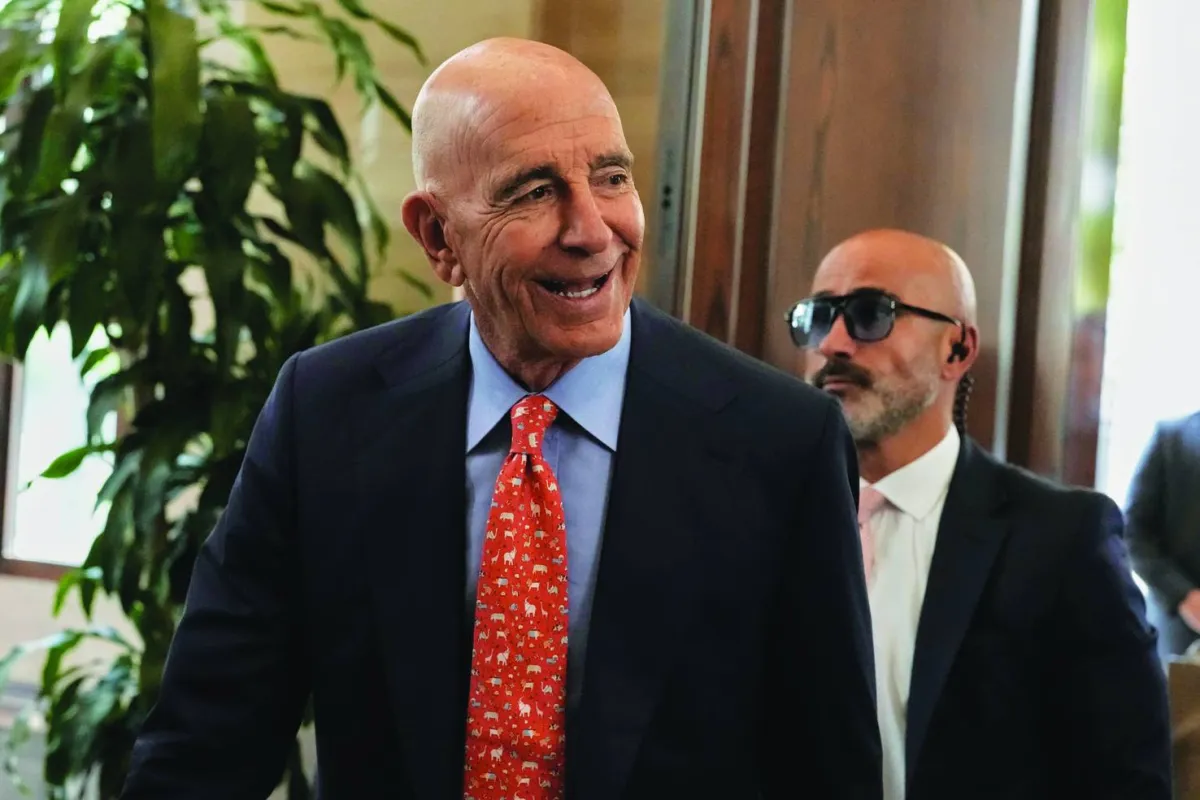 السفير الأميركي لدى تركيا والمبعوث الرئاسي إلى لبنان توم برَّاك لدى وصوله إلى مقر رئيس مجلس النواب اللبناني نبيه بري الثلاثاء (أ.ب)