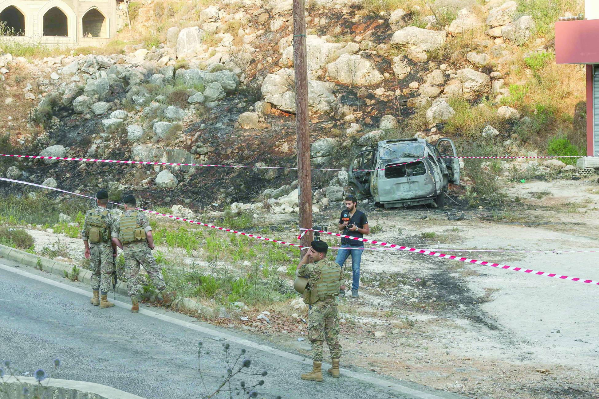 عناصر من الجيش اللبناني قرب موقع تعرّض لهجوم بمسيّرة إسرائيلية في بلدة النميرية بجنوب لبنان 9 يونيو 2025 (أ.ف.ب)