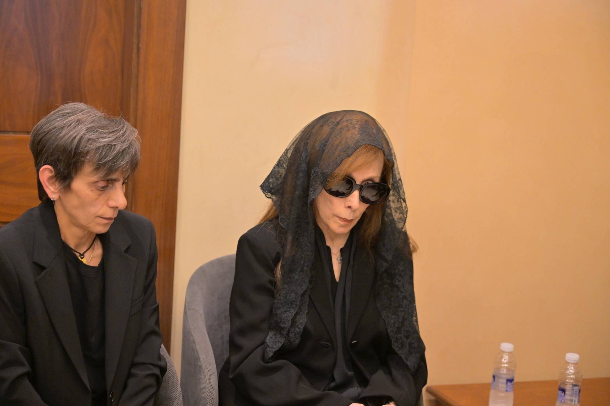 وبعد نحو 20 دقيقة، انضمت مع كريمتها إلى أفراد العائلة والمقربين في قاعة الاستقبال التابعة للكنيسة، حيث شاركت في تقبّل التعازي، وكانت تكتّف يديها وتشكر المعزّين بصمت محنية رأسها.