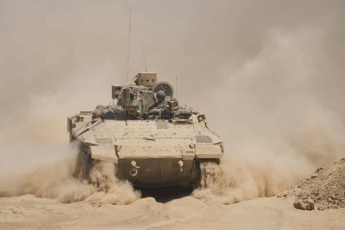 آلية عسكرية إسرائيلية عند الحدود مع قطاع غزة (أ.ب)