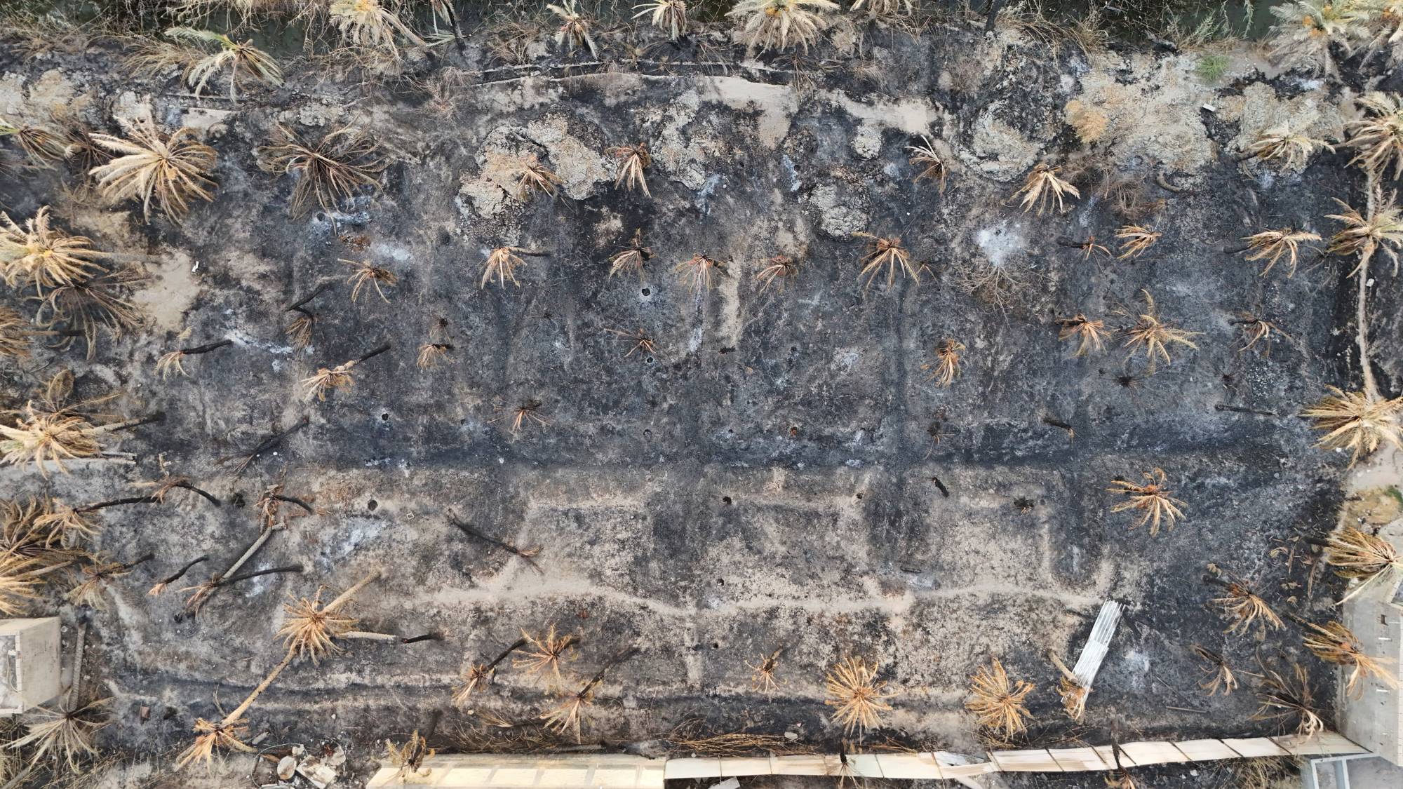 تُظهر لقطة جوية أشجار نخيل ميتة ومحترقة في مزرعة مهجورة بمحافظة البصرة جنوبي العراق حيث أجبر شح المياه وارتفاع نسبة الملوحة المزارعين على ترك أراضيهم 30 يوليو الماضي (رويترز)