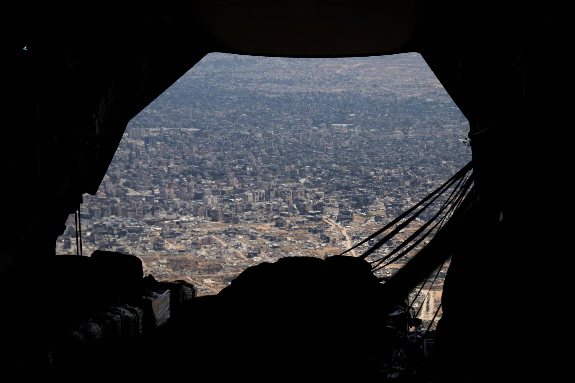قطاع غزة كما شوهد من طائرة تابعة لسلاح الجو الألماني أثناء إسقاطها مساعدات إنسانية يوم 6 أغسطس 2025 (إ.ب.أ)