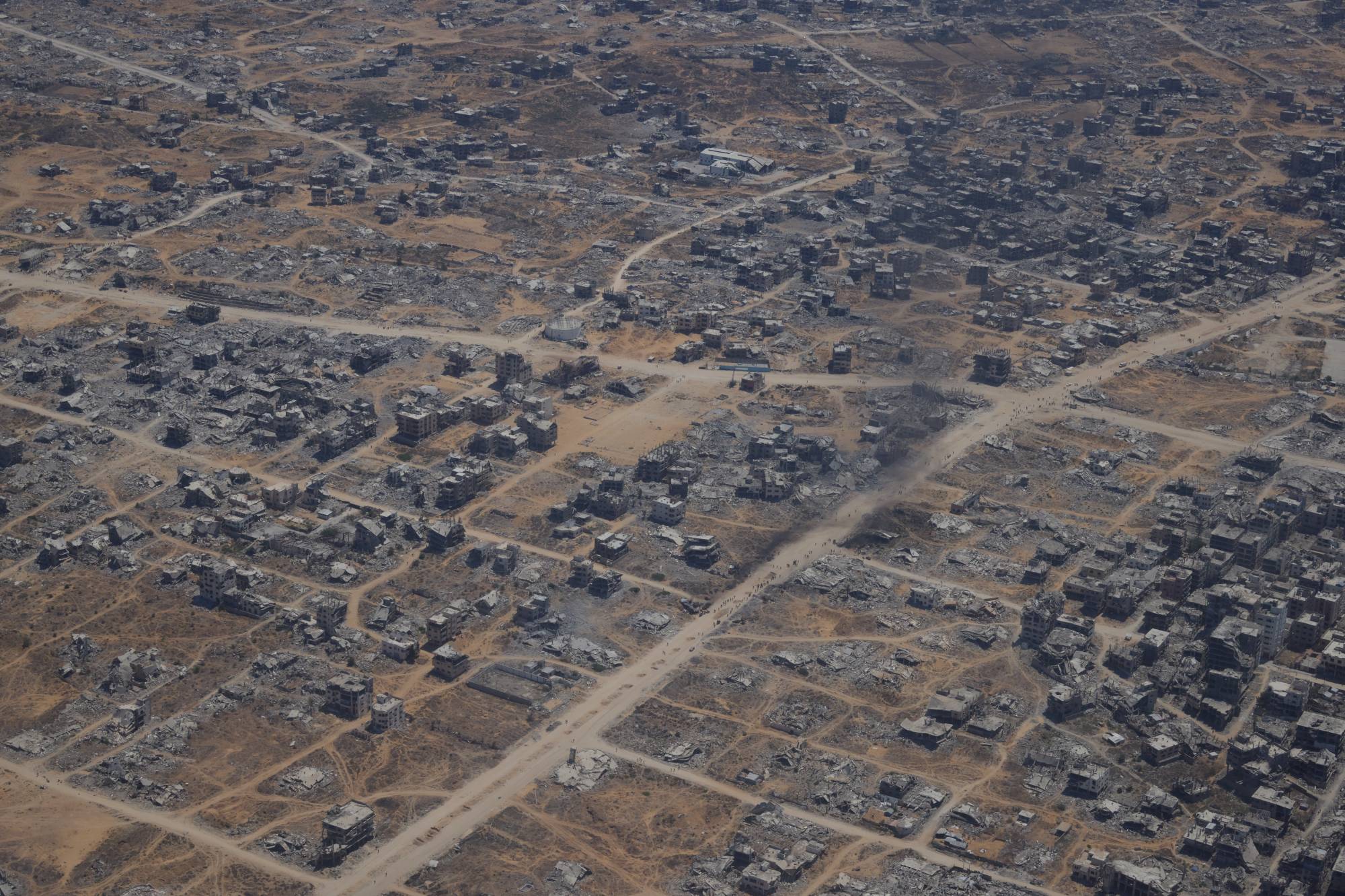 أظهرت لقطات جوية التقطتها طائرة تابعة لسلاح الجو الألماني أثناء إسقاطها مساعدات إنسانية، اليوم (الأربعاء)، دماراً هائلاً في القطاع الفلسطيني جراء الحرب الإسرائيلية التي أوقعت ما يزيد على 61 ألف قتيل، وتسببت في مجاعة حادة بين سكان القطاع.