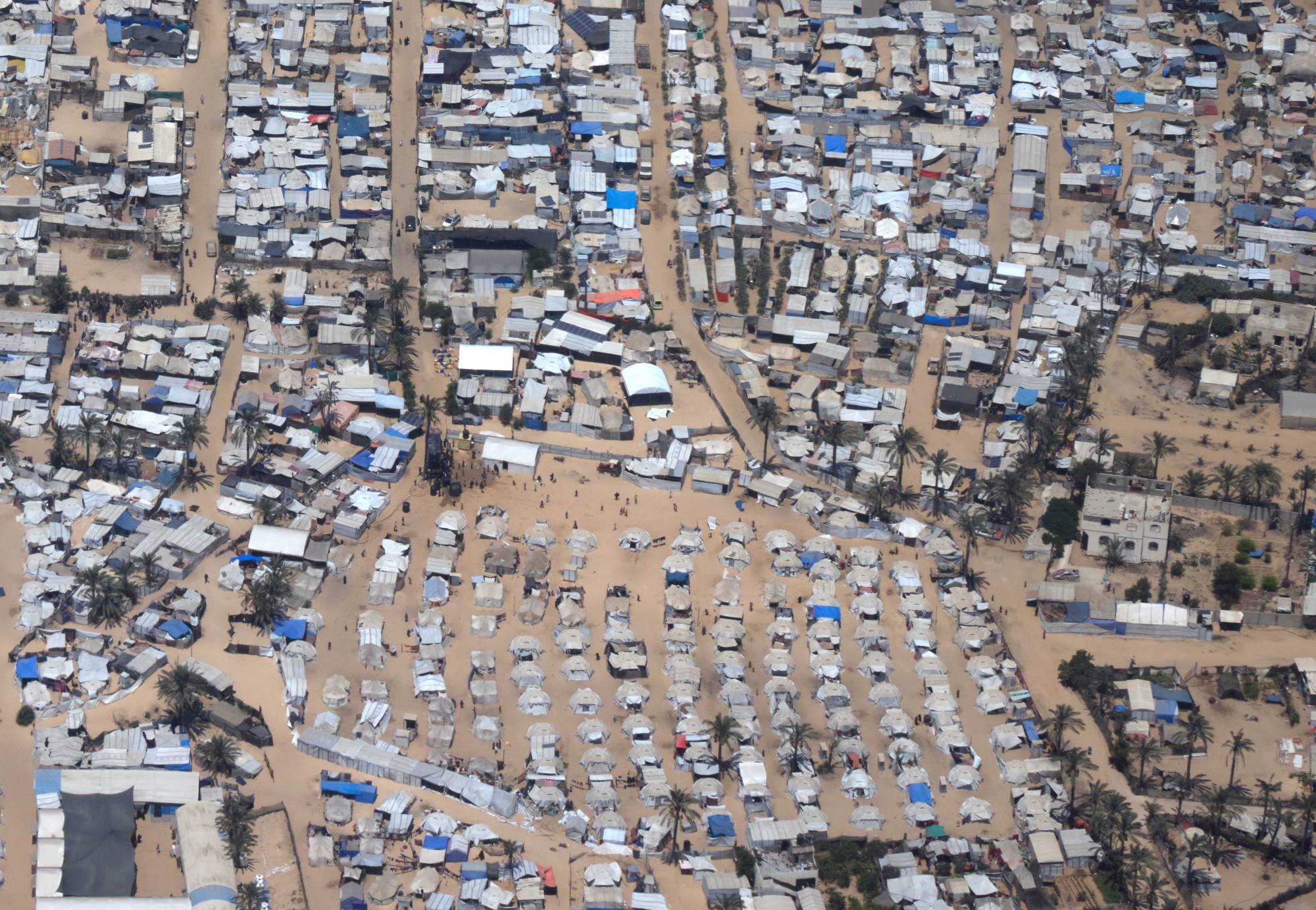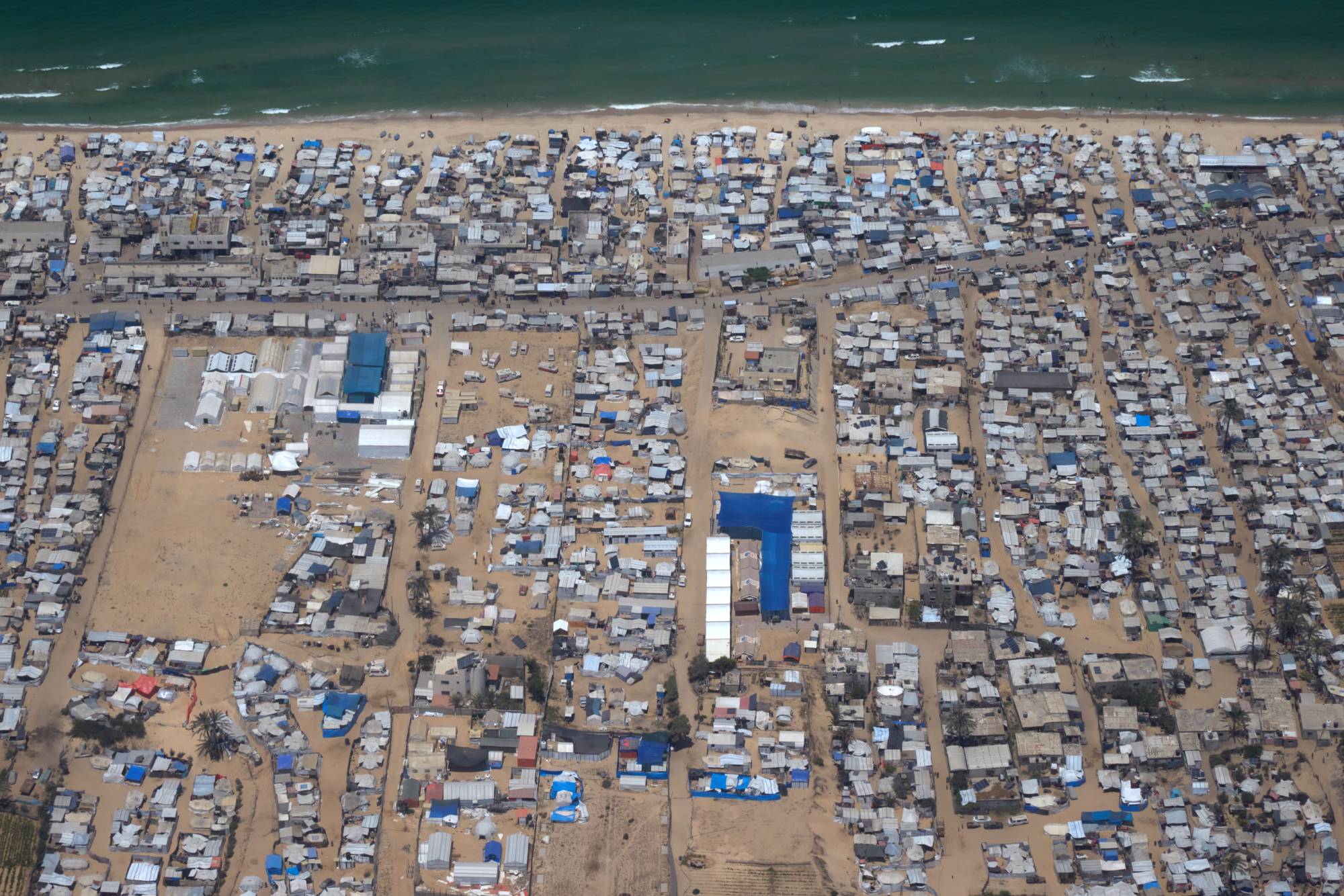 وبيّنت الصور خيام نازحين فلسطينيين في منطقة المواصي في القطاع المحاصر، كما بيّنت مشاهد جوية من الجزء الأوسط للقطاع.
