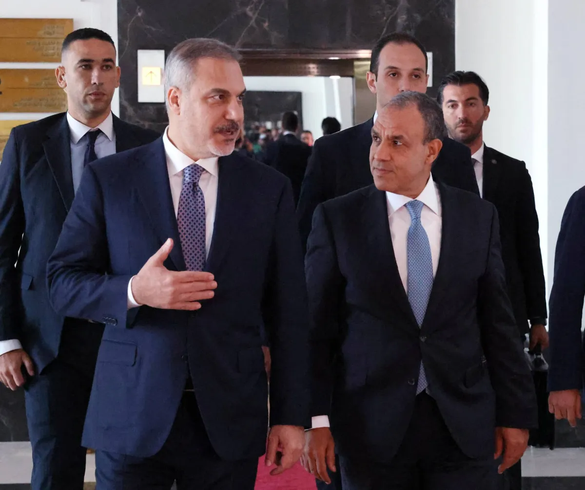 وزير الخارجية المصري بدر عبد العاطي مع نظيره التركي هاكان فيدان (رويترز)