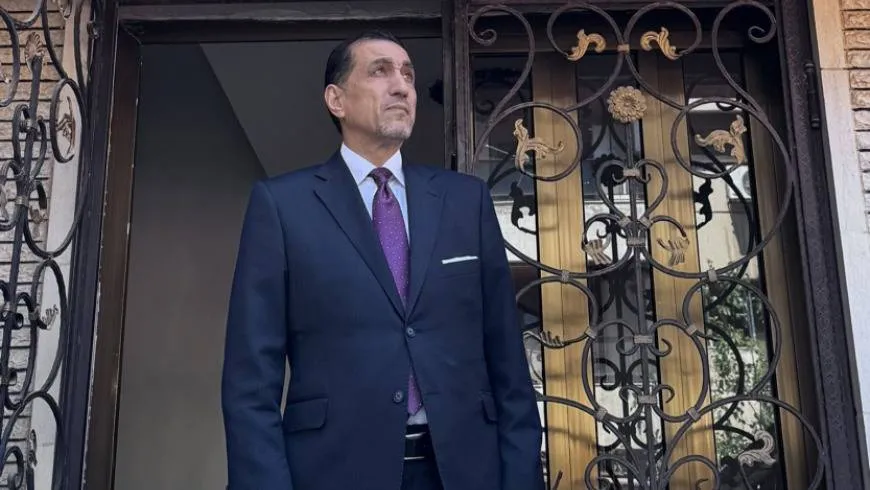 سفيان القضاة سفيراً للأردن في دمشق أمام مقر السفارة (حساب إكس)