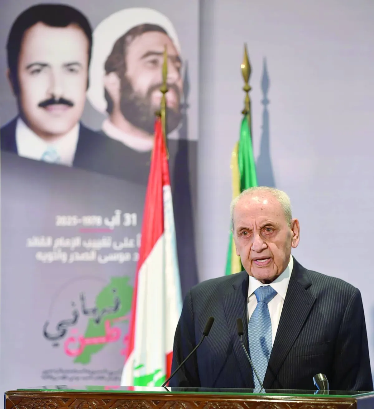 وعدَّ بري في كلمة بمناسبة إحياء ذكرى اختفاء موسى الصدر ورفيقيه أن «العقول الشيطانية أخطر على لبنان من سلاح المقاومة الذي حرّر الأرض والإنسان وصان الكرامة والسيادة الوطنية»، وأضاف: «بالرغم من هذا النكران، نعود ونؤكد أننا منفتحون لمناقشة مصير هذا السلاح الذي هو عزنا وشرفنا كلبنان، في إطار حوار هادئ توافقي تحت سقف الدستور وخطاب القسم والبيان الوزاري (لحكومة الرئيس نواف سلام) والقوانين والمواثيق الدولية».