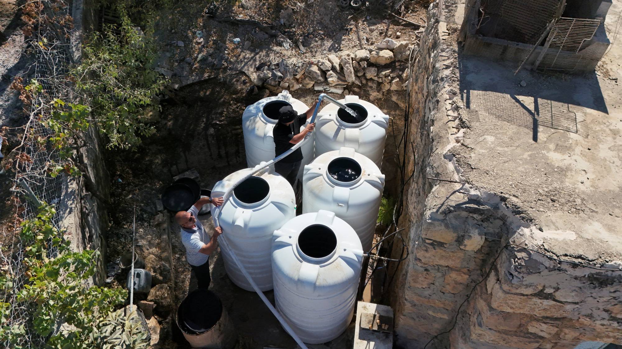 في أنحاء الضفة الغربية، تنتشر خزانات المياه في منازل الفلسطينيين، حيث تُخزَّن مياه الأمطار أو المياه التي تصل بالشاحنات بسبب شبكة مياه لا يمكن الاعتماد عليها بالفعل، زادتها هجمات المستوطنين سوءاً.