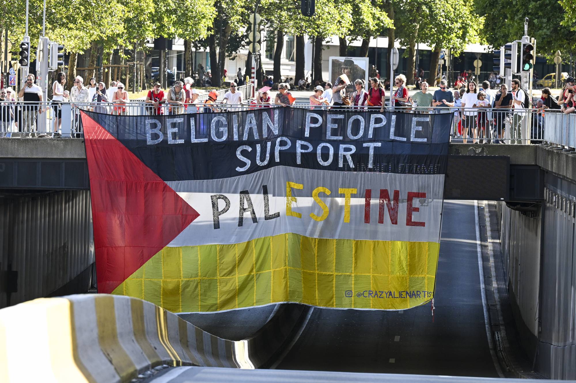 احتجاج تحت شعار «ارسموا خطاً أحمر لغزة»، في العاصمة البلجيكية بروكسل في 7 سبتمبر 2025 (إ.ب.أ)