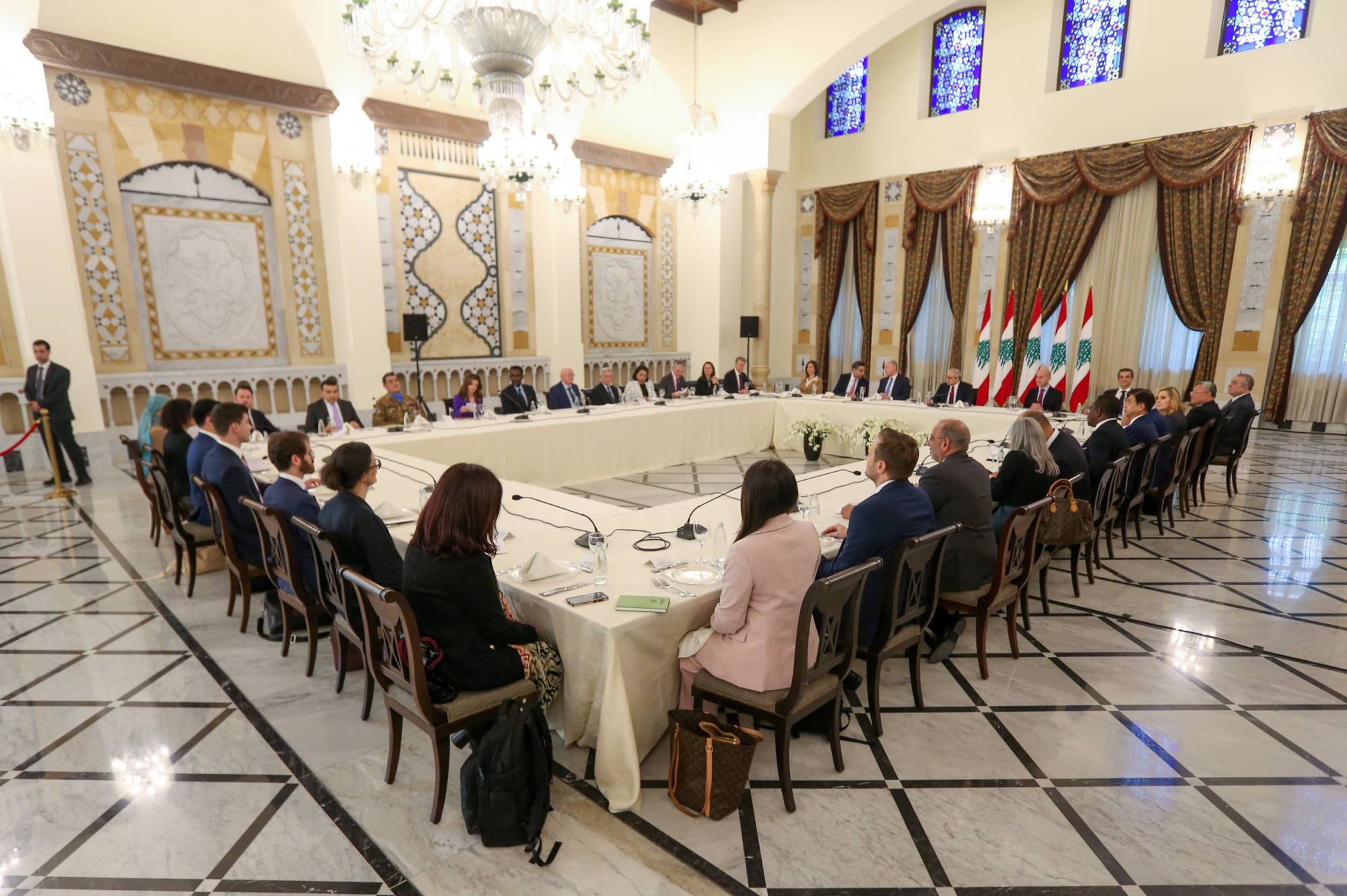 رئيس الحكومة نواف سلام خلال استقباله وفد مجلس الأمن الدولي في بيروت يوم الجمعة الماضي (إ.ب.أ)