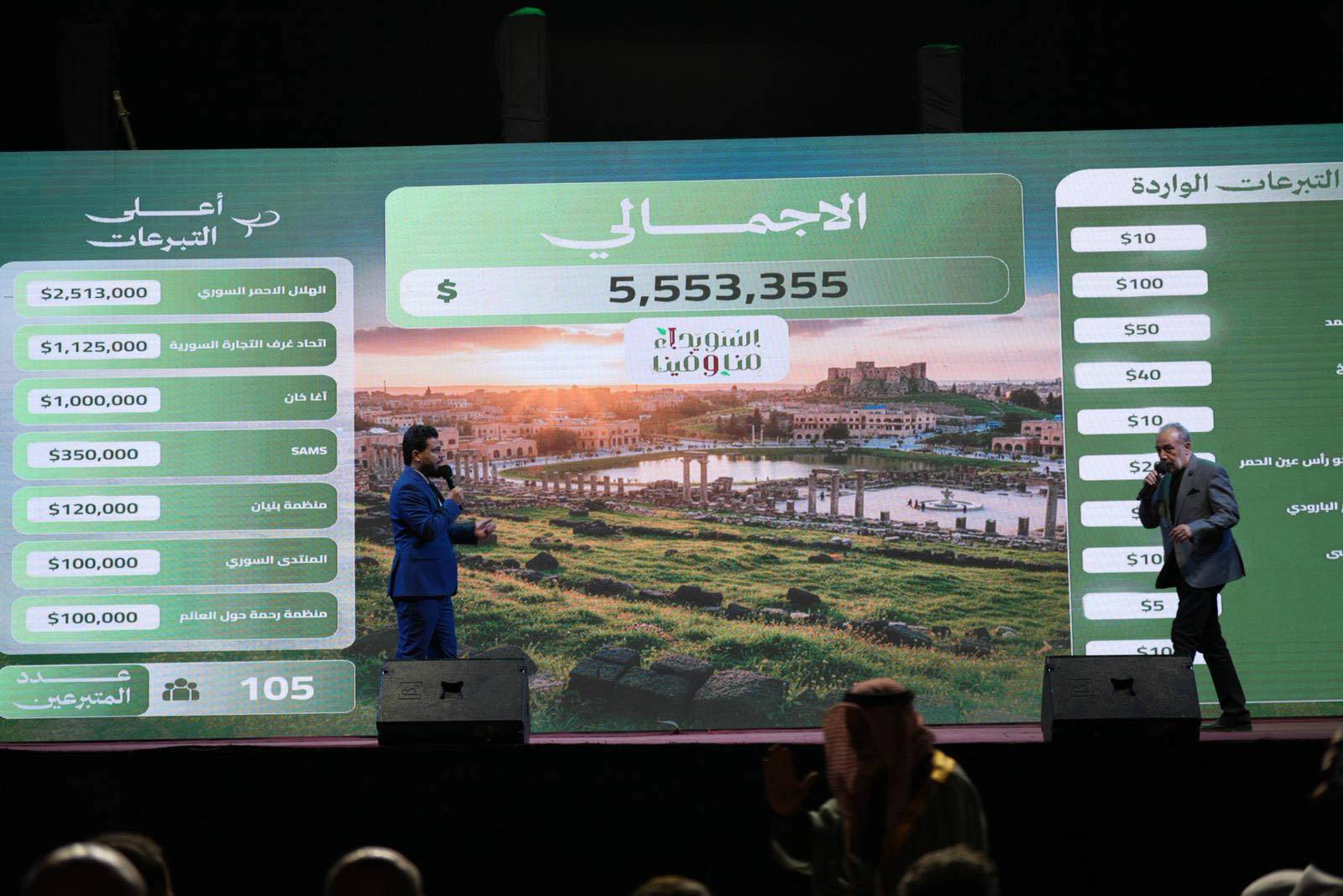 وقدّم اتحاد غرفة التجارة السورية مليوناً و125 ألف دولار، فيما تبرعت وزارة الطاقة بمليون و600 ألف دولار والمديرية العامة للمياه 900 ألف دولار أميركي.