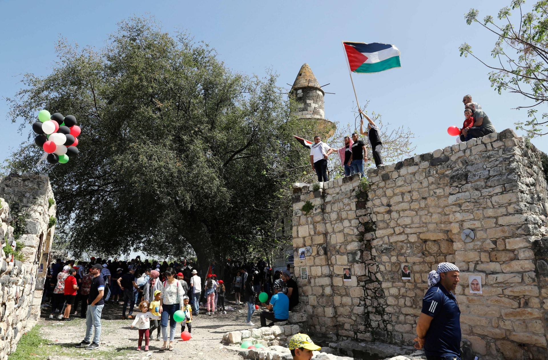 مواطنون عرب في يافا يحيون في مارس 2008 ذكرى مقتل 6 من العرب عام 1976 خلال احتجاجات ضد مصادرة الأراضي في الجليل (غيتي)