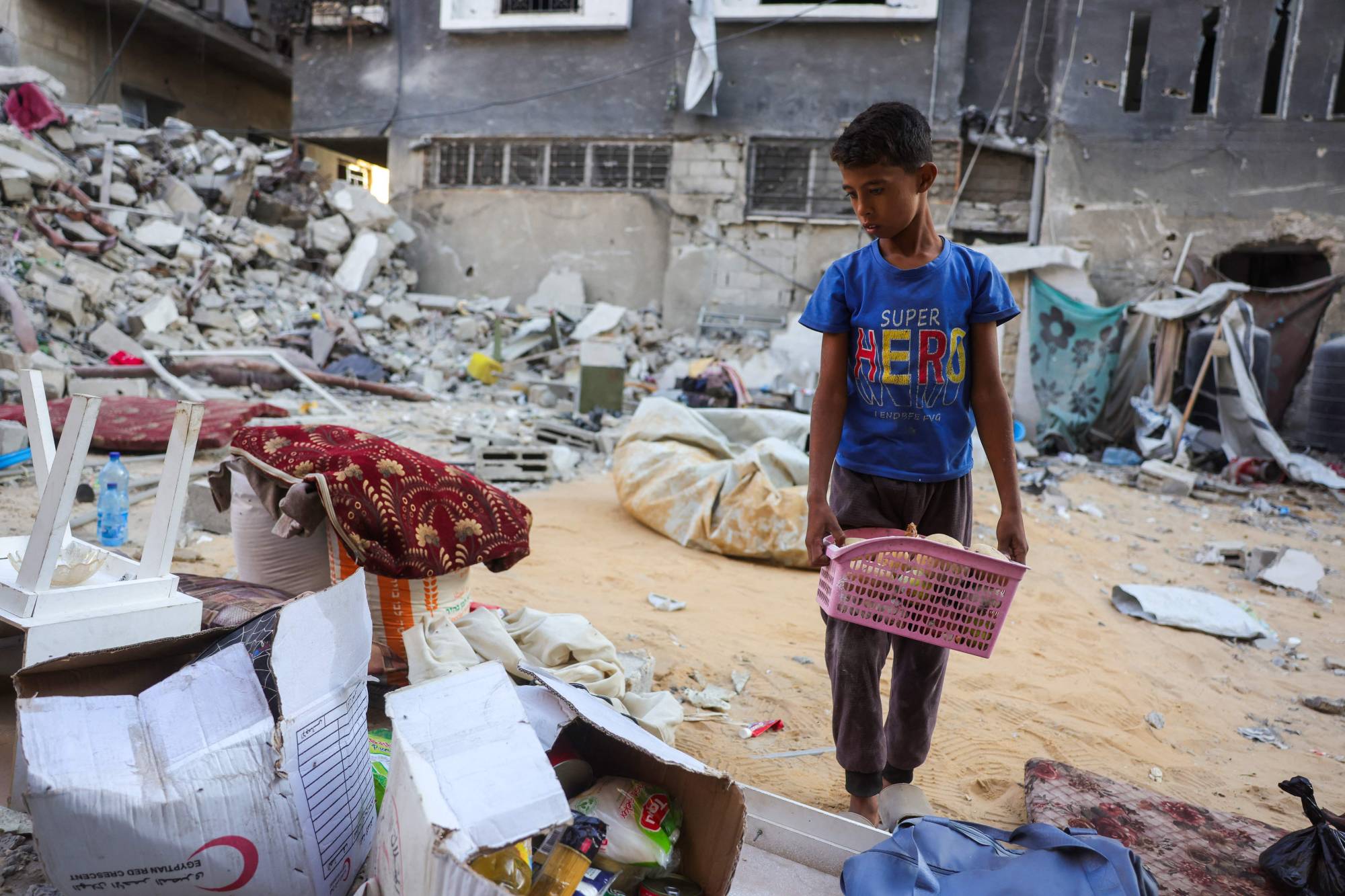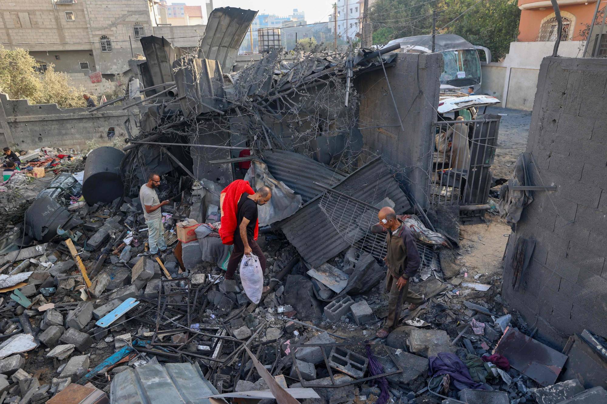 وفي مخيم النصيرات وسط القطاع، عمل أشخاص بدا عليهم التعب الأربعاء، على البحث عن بعض الحاجيات تحت أنقاض مبنى سوّته غارة جوية بالأرض.