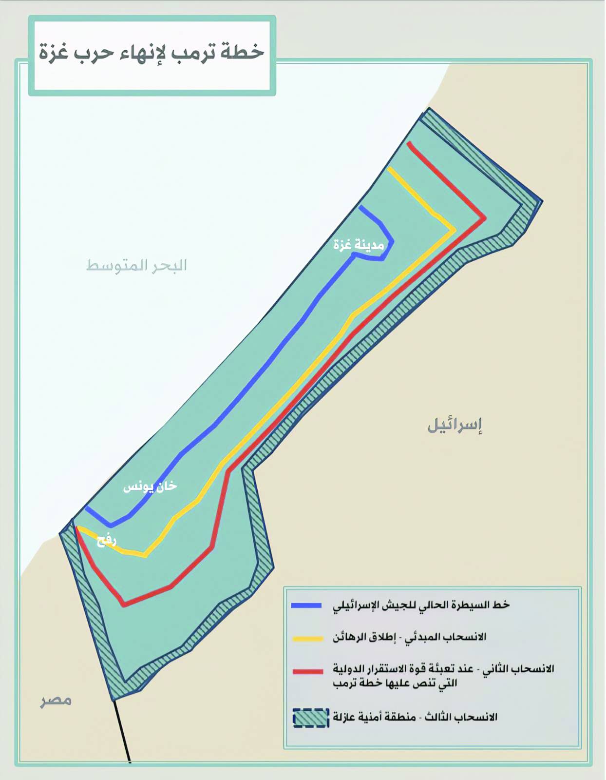 خريطة لمراحل الانسحاب من غزة وفق خطة ترمب (البيت الأبيض)