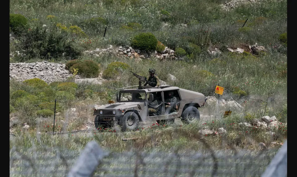 مركبة عسكرية إسرائيلية تظهر بالقرب من الحدود بين مرتفعات الجولان المحتلة وسوريا (رويترز)