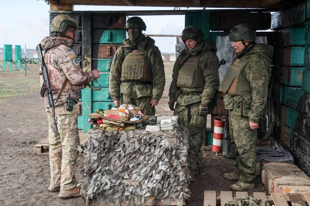مجنّدون جدد يشاركون بتدريب عسكري بالمنطقة العسكرية الجنوبية في روسيا يوم 14 نوفمبر 2025 (د.ب.أ)