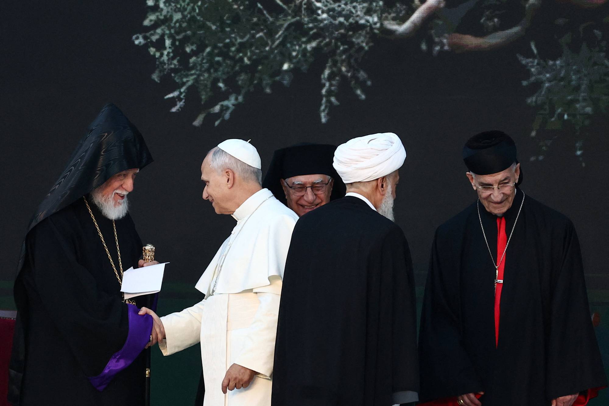 دعا البابا ليو الرابع عشر، رؤساء الطوائف الإسلامية والمسيحية في لبنان، إلى أن يكونوا «بُناة سلام»، وأن يواجهوا عدم التسامح، ويَتَغَلَّبُوا على العُنف، ويرفُضُوا الإقصاء، وذلك خلال اليوم الثاني من زيارته إلى لبنان، في وقت أكد فيه رؤساء الطوائف إصرارهم على العيش المشترك والاستقرار، فيما وضع نائب رئيس المجلس الإسلامي الشيعي الأعلى قضية لبنان بين يدي البابا.