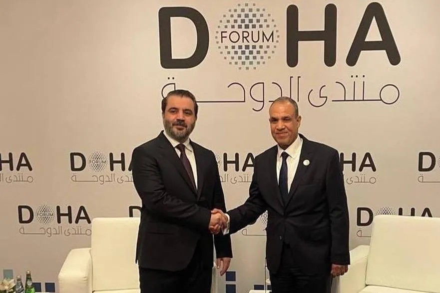 وزير الخارجية المصري بدر عبد العاطي يلتقي بوزير الخارجية السوري أسعد الشيباني في منتدى الدوحة بالعاصمة القطرية (صفحة وزارة الخارجية المصرية بفيسبوك)