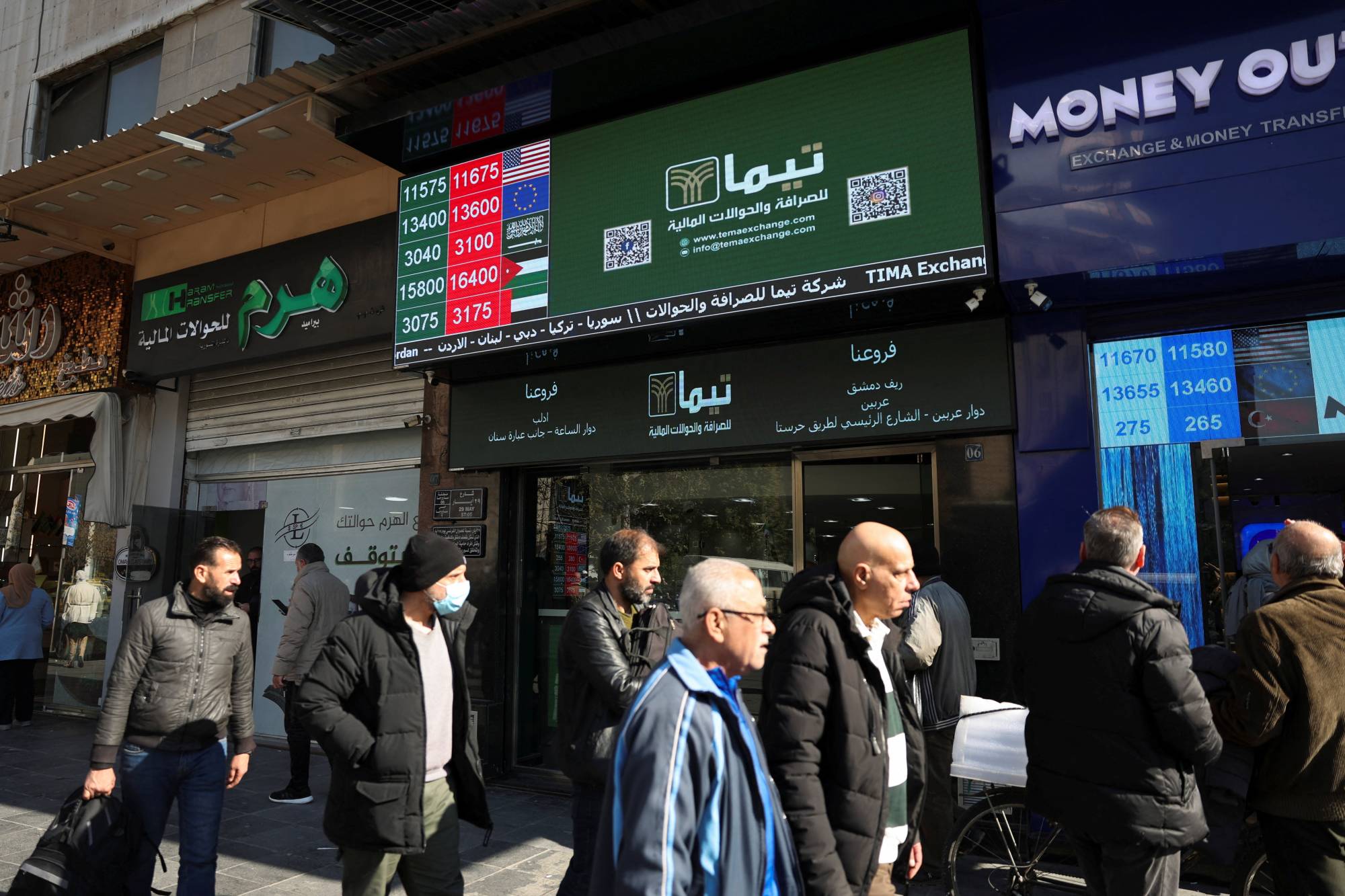 محل صرافة وتحويل أموال في دمشق يوم 18 ديسمبر بعد أن أُلغيت عقوبات «قيصر» الصارمة التي فُرضت على سوريا في عهد الرئيس السابق بشار الأسد (رويترز)