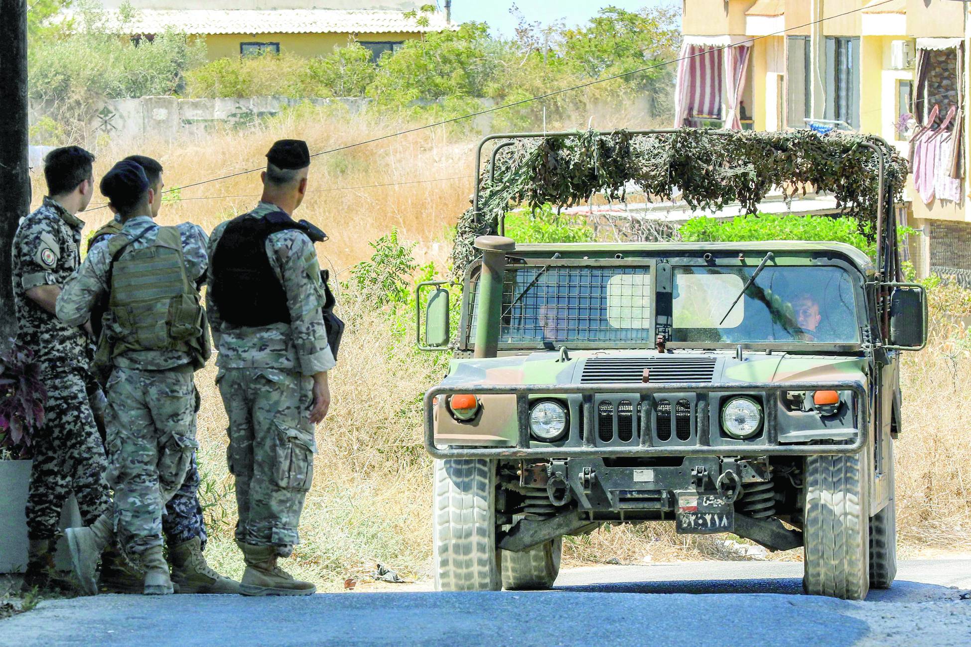 جنود قرب مخيم «عين الحلوة» في جنوب لبنان خلال عملية تسليم مجموعات فلسطينية سلاحها للجيش اللبناني 13 سبتمبر 2025 (أ.ف.ب)