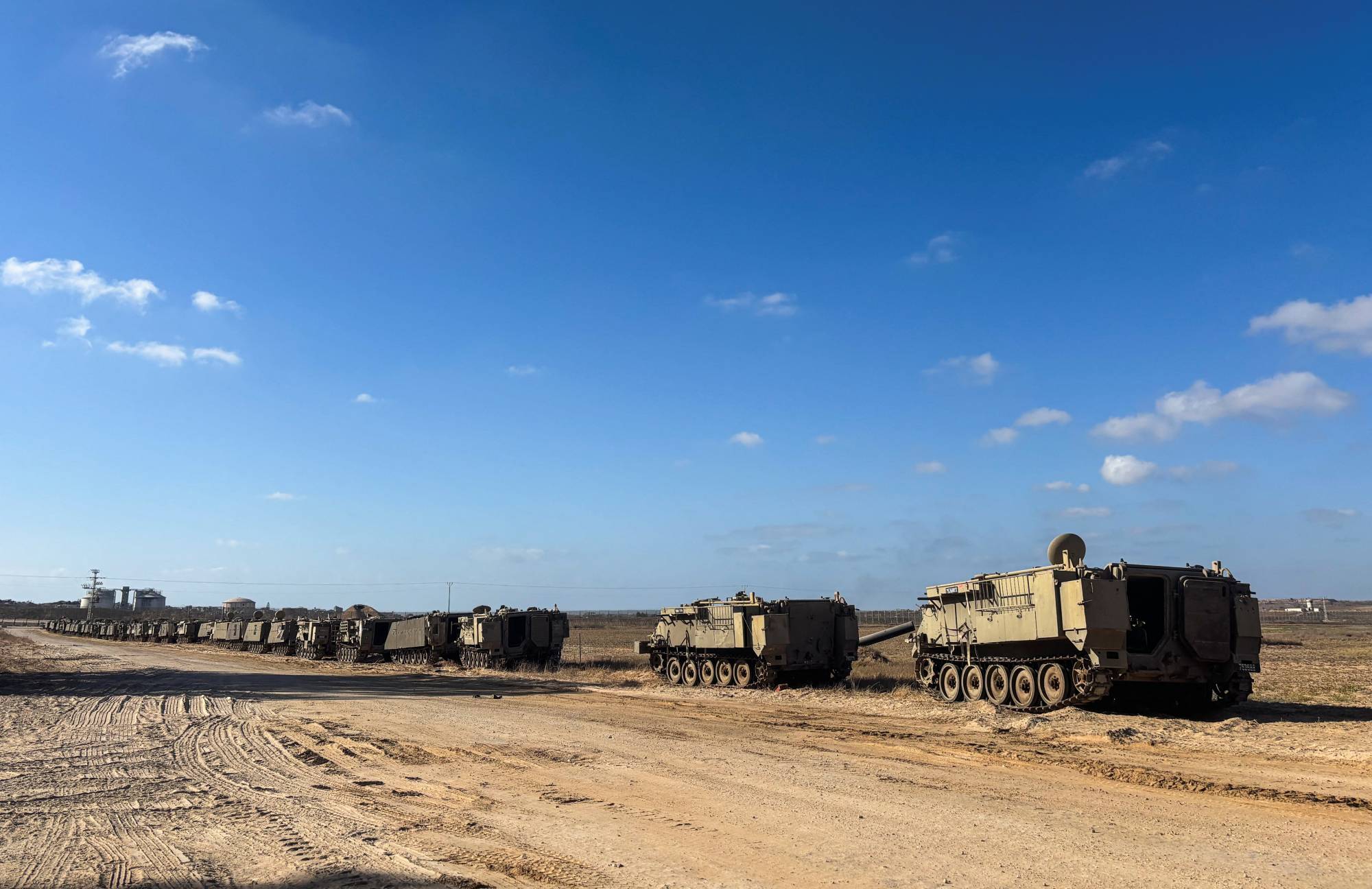 ناقلات جند مدرعة من طراز قديم تصطف بالقرب من حدود إسرائيل مع غزة (رويترز)