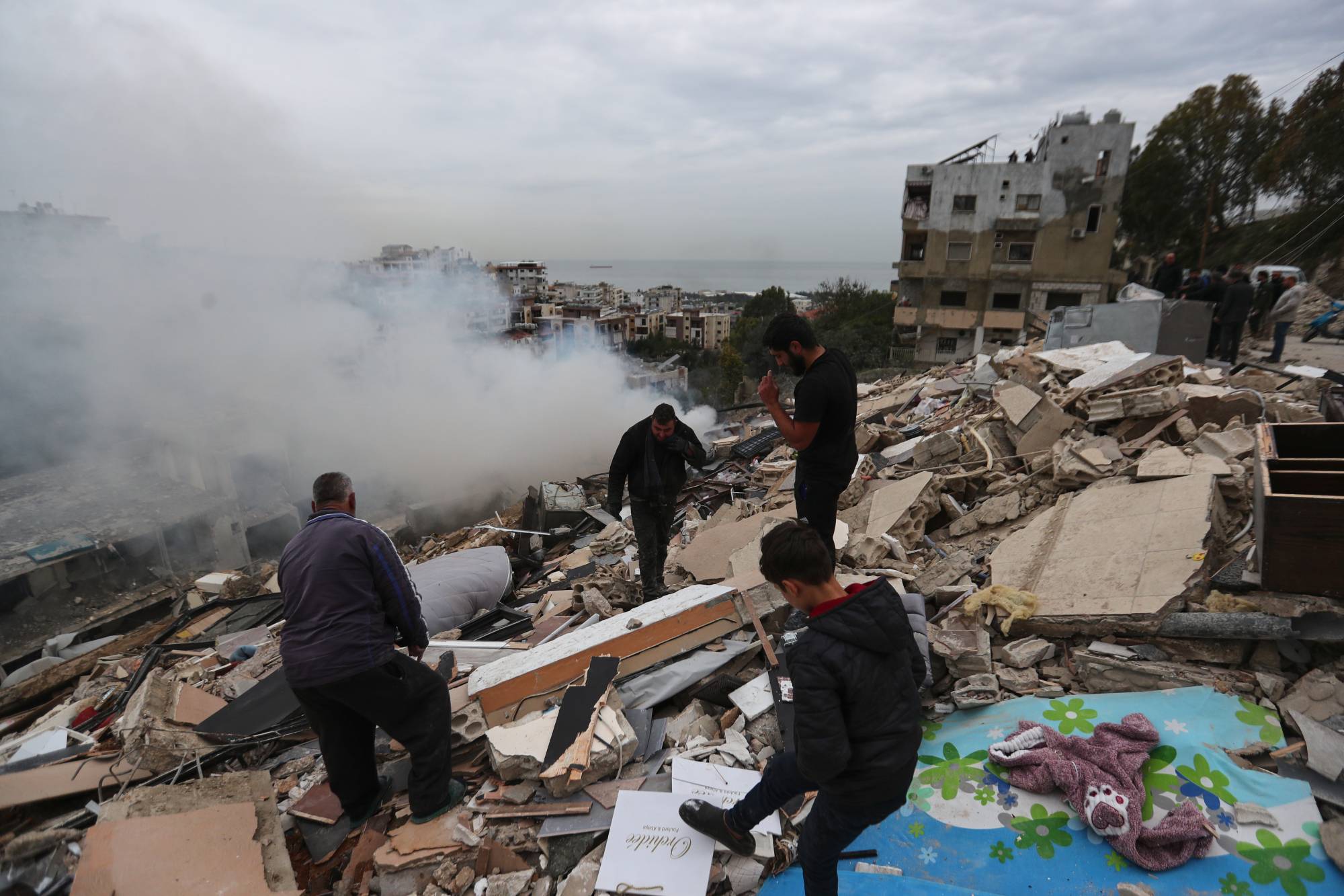 الدخان يتصاعد جرّاء غارات جوية دمرت وحدات سكنية في بلدة قناريت بجنوب لبنان (أ.ب)