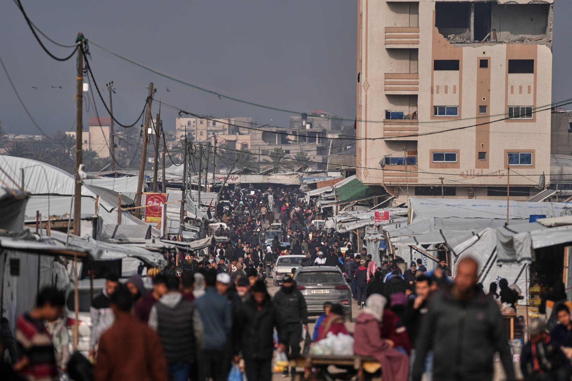 ويتناقض المشهد في منطقة المواصي بمدينة خان يونس بصورة كبيرة مع الرؤية التي طرحها قادة العالم في دافوس بسويسرا، حيث دشن الرئيس الأميركي دونالد ترمب مجلس السلام الذي سيشرف على غزة.