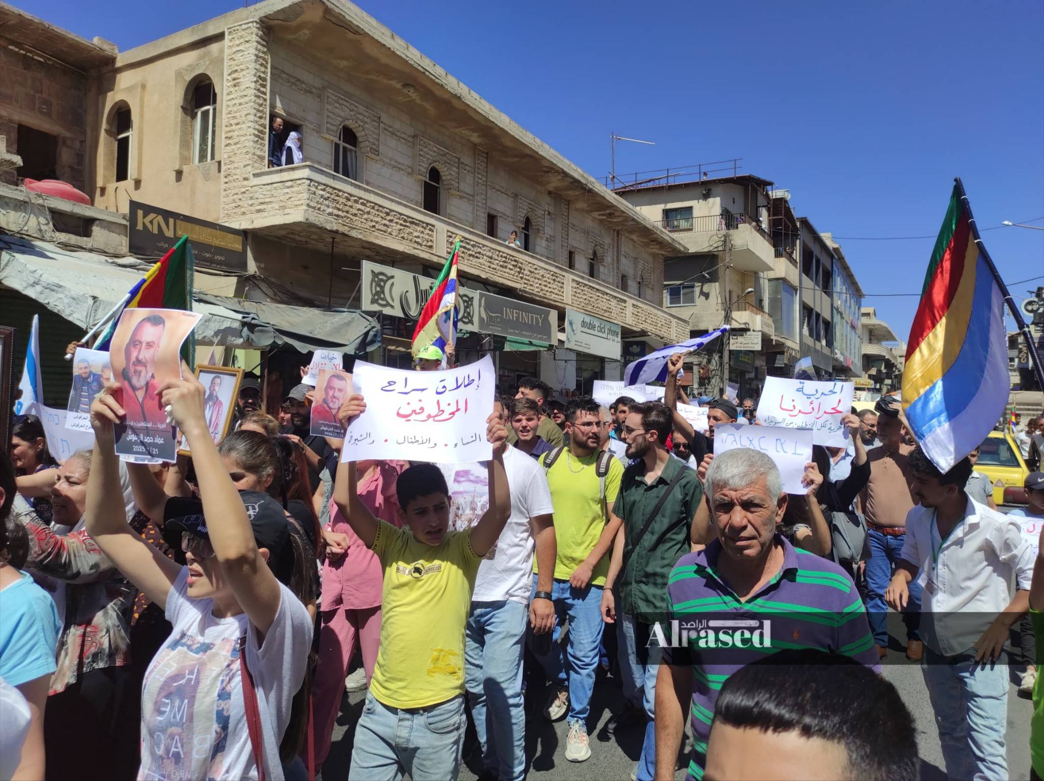 أرشيفية من مظاهرة خرجت في مدينة شهبا بريف السويداء رُفعت خلالها أعلام إسرائيلية (موقع «الراصد»)