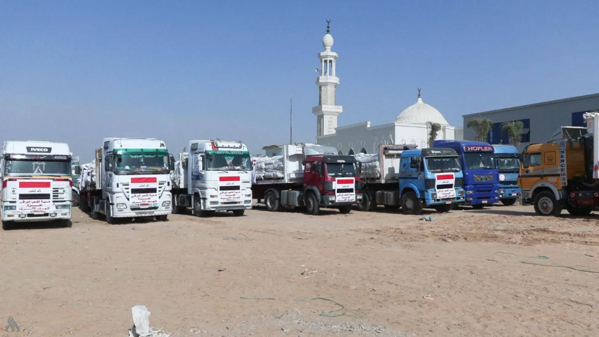 تجري التحضيرات لإدخال 27 شاحنة مساعدات إنسانية مُقدمة من «التيار الصدري» في العراق إلى أهالي قطاع غزة، تشمل خياماً وبطانيات.