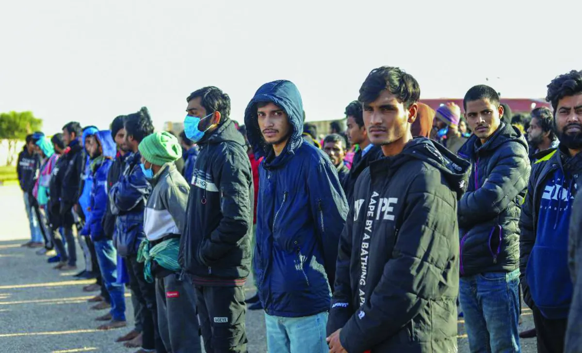 مهاجرون غير نظاميين قبيل ترحيلهم من منفذ أمساعد البري شرق ليبيا (جهاز الهجرة غير المشروعة بمدينة شحات)