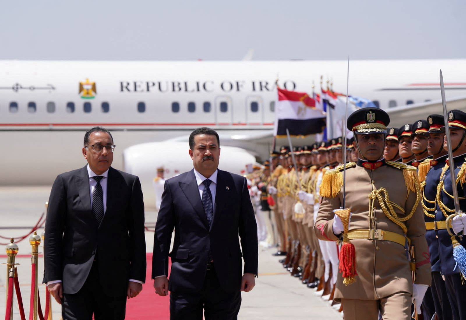 رئيس الوزراء المصري مصطفى مدبولي يستقبل نظيره العراقي في القاهرة (رويترز)