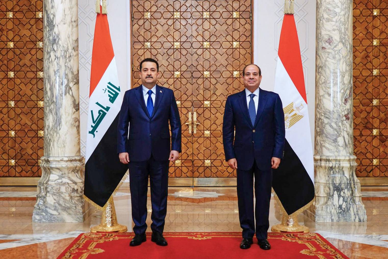 الرئيس المصري عبد الفتاح السيسي ورئيس الوزراء العراقي محمد شياع السوداني في القاهرة (أ.ف.ب)
