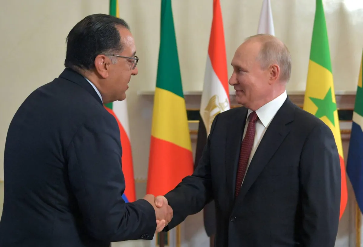 الرئيس الروسي فلاديمير بوتين يصافح رئيس الوزراء المصري مصطفى مدبولي (رويترز)