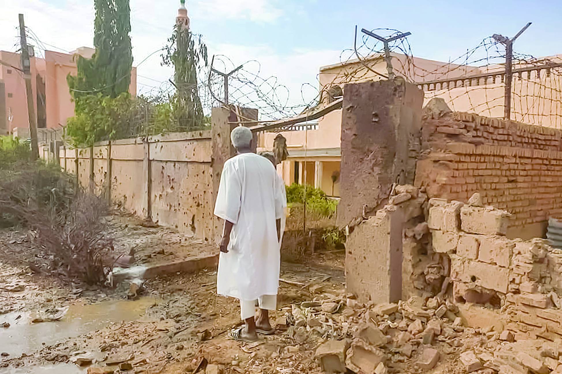 يتداول رواد مواقع التواصل الاجتماعي السودانيون، بشكل واسع، صورة لمواطنين في حي المسالمة العريق في أم درمان، وهم يدفنون جثمان أحد قتلى الحرب بين الجيش وقوات «الدعم السريع» في الشارع أمام منزله، والجثمان المكفن بالأبيض مسجى إلى جوار رجل يحفر القبر، في صورة تلخص مأساة الخرطوم، التي بدت واضحة في ملامح الرجال المحيطين بالقبر المنزلي.