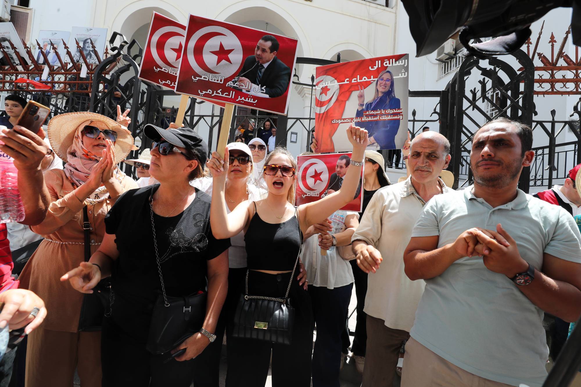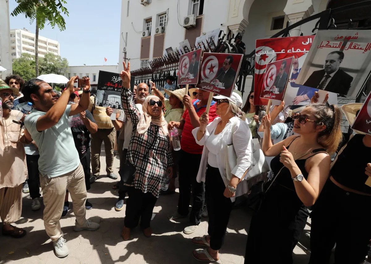 توم توقيف نحو عشرين من المعارضين والشخصيات الناشطة في المجال السياسي والمالي والإعلامي، في إطار التحقيقات بتهمة «التآمر على أمن الدولة الداخلي والخارجي»، واعتبرهم الرئيس التونسي «إرهابيين». وتجمّع المتظاهرون أمام مقر محكمة الاستئناف في العاصمة التونسية، إثر دعوة للاحتجاج أطلقها أقارب وأفراد من عائلات الموقوفين. وقال الناطق الرسمي باسم حركة النهضة، عماد الخميري، وهو أكبر الأحزاب المعارضة للرئيس سعيّد، إن «الوقفة تأتي تلبية لنداء عائلات المعتقلين السياسيين للمطالبة بإطلاق سراح كل المعتقلين». وتابع الخميري، وهو أيضا عضو في الائتلاف المعارض «جبهة الخلاص الوطني»، إن «الاعتقالات كانت لتلهية الرأي العام عن القضايا الحقيقية، التي تغرق فيها البلاد، وهي بالضرورة قضايا اقتصادية واجتماعية ومالية، وتعبير عن الأزمة السياسية والدستورية الخانقة». بينما اعتبر عبد العزيز، نجل المعارض الموقوف عصام الشابي، أن «والدي يدفع تكلفة حبه لتونس». مؤكدا أن «القضاء لا يعمل باستقلالية، ويعمل تحت الضغط».